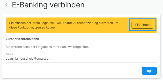 Wir freuen uns sehr, dass wir die bLink Bankenschnittstelle von SIX Group implementieren konnten. Damit erhalten Sie weitere Bankanbindungen, um sie dauerhaft mit AbaNinja zu verbinden. Um eine Bank via bLink zu verbinden ist die 2-Faktor Authentifizierung zwingend. Nach dem Einrichten der 2-Faktor Authentifizierung müssen Sie sich zuerst abmelden und neu einloggen, um die Anbindung fortzuführen.