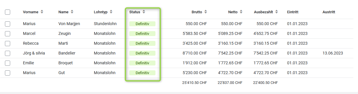 Es ist möglich, dass Sie im Laufe des Jahres einen Wechsel der Verbuchung vornehmen. Damit dies korrekt verarbeitet werden kann, müssen Sie diese Einstellung unbedingt ändern, nachdem Sie Ihre Lohnabrechnungen mit dem Status "Definitiv" versehen haben.