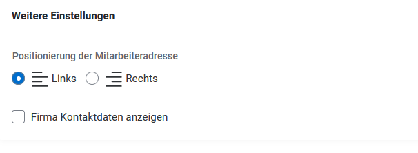 Sie können frei wählen, ob Sie die Adresse des Mitarbeiters linksbündig, rechtsbündig oder zentriert haben möchten.