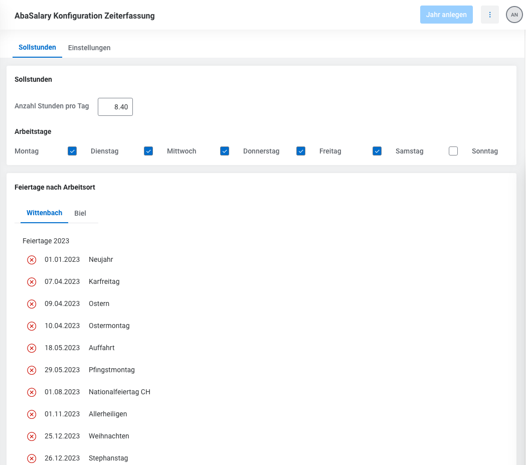 Weiter kann der grundsätzliche Ferienanspruch entweder für alle Mitarbeitenden oder abhängig von der Altersgruppe definiert werden. Die Ferien- und Absenzen Verwaltung folgt jedoch erst mit kommenden Updates.