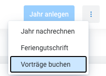 Über das Dreipunktemenü oben rechts können Vorträge gebucht werden. Die Vorträge überschreiben den Saldo per 1. des gewählten Monats. Die Vorträge können dazu genutzt werden, um bestehende Gleitzeitsalden zu übernehmen oder unterjährig mit einer Erfassung zu starten. Beispiel: Vortrag per 08.2023, Überstundenvortrag, Wert 0.00 für Mitarbeiter x. --> Der Gleitzeitsaldo für Mitarbeiter x beträgt nach Speicherung des Vortrages am 1.8.2023 0.00.