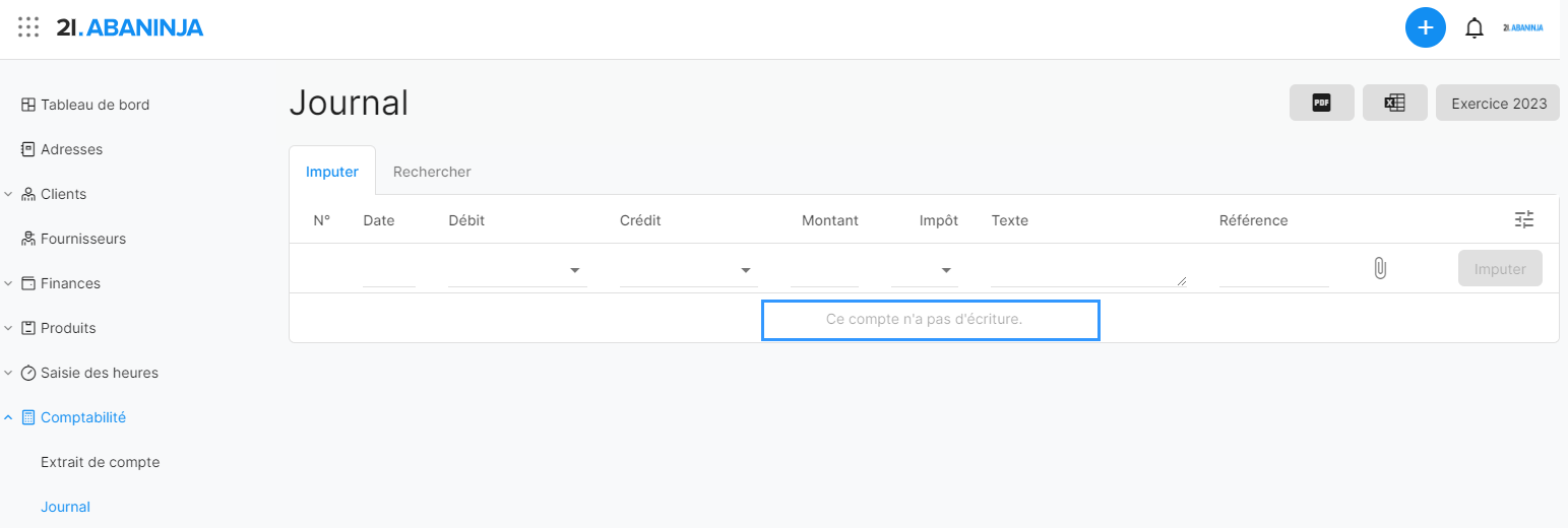 - Le compte AbaNinja ne doit contenir aucune écriture.
