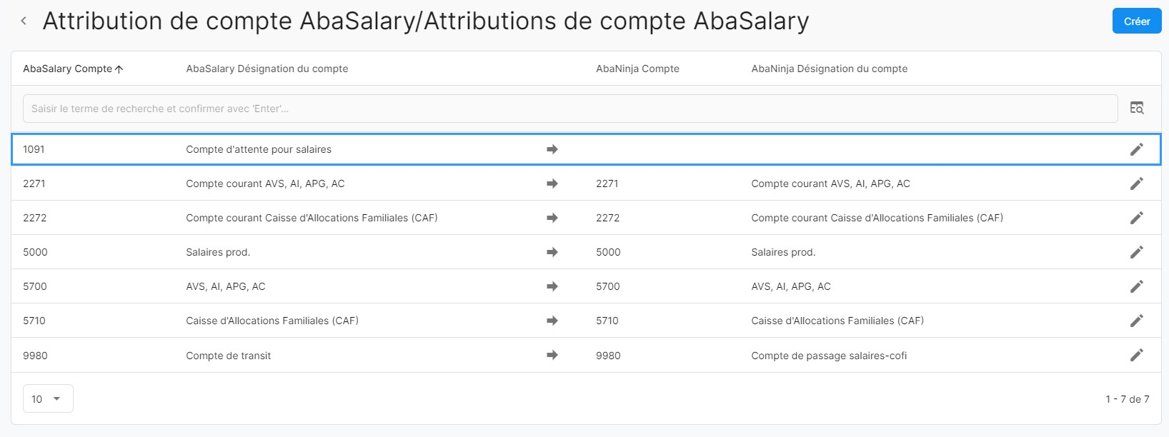 Attribution de comptes AbaSalary