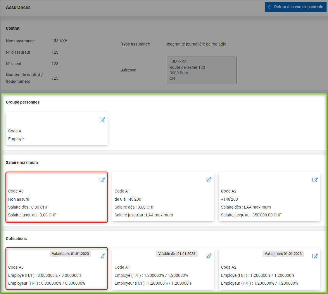 Pour l'assurance LAA, LAAC et IJM, vous pouvez donc choisir correctement l'assurance à laquelle l'employé doit être affiliée.