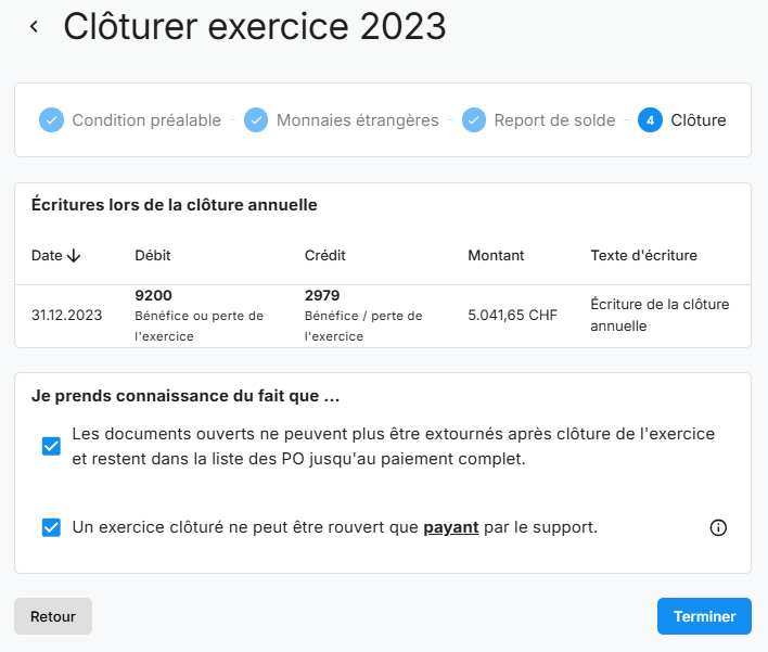 Avec la mise à jour du 29 janvier 2025, le processus de clôture de l'exercice a été amélioré et étendu.