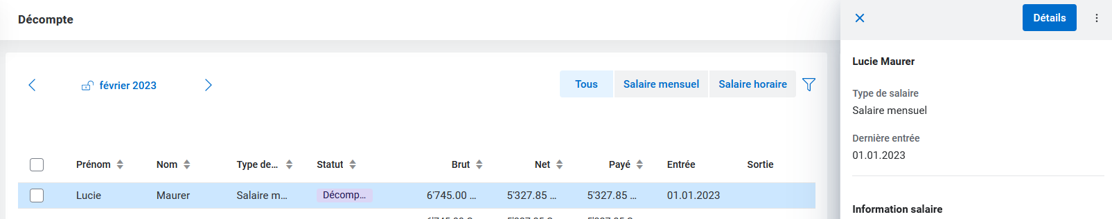 Si cette sélection n'est pas faite ou si elle est faite tardivement, la base pour le droit au 13e salaire est tout de même remplie en arrière-plan. Cela conduit par exemple à un calcul non-souhaité dans le mois de départ et ne peut être corrigé que manuellement dans le décompte.