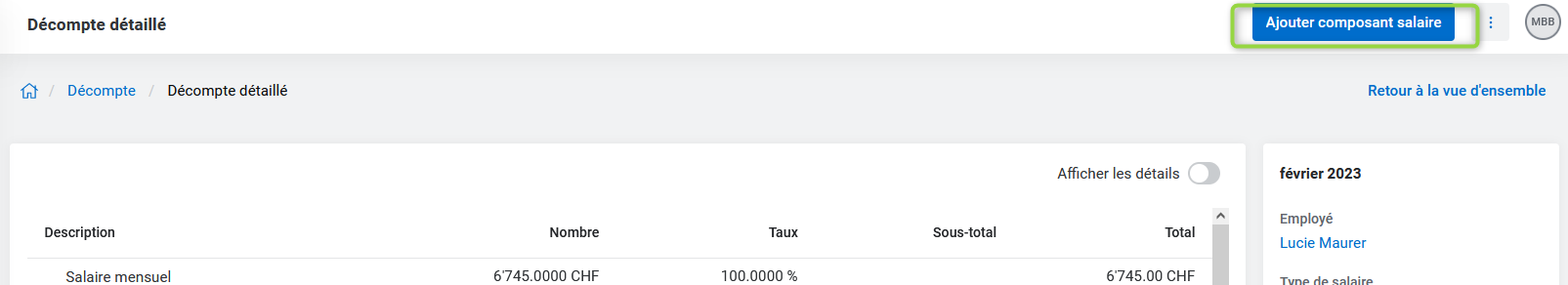 Vous trouverez les composants de salaire en cliquant la fonction "Ajouter composant salaire".