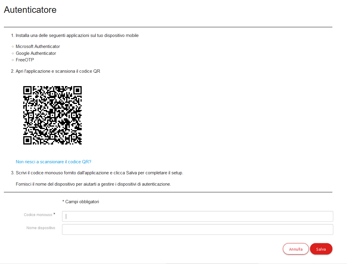 - Installate una delle seguenti app sul vostro smartphone (Google Authenticator, Microsoft Authenticator o FreeOTP).