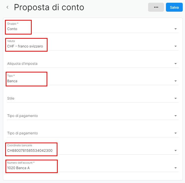 In AbaNinja sono già state preregistrate diverse proposte di conto. Esiste tuttavia la possibilità di creare proposte di conto proprie. Affinché il conto bancario memorizzato in Finanze > Banking venga preso in considerazione, è necessario registrare una nuova proposta di conto.