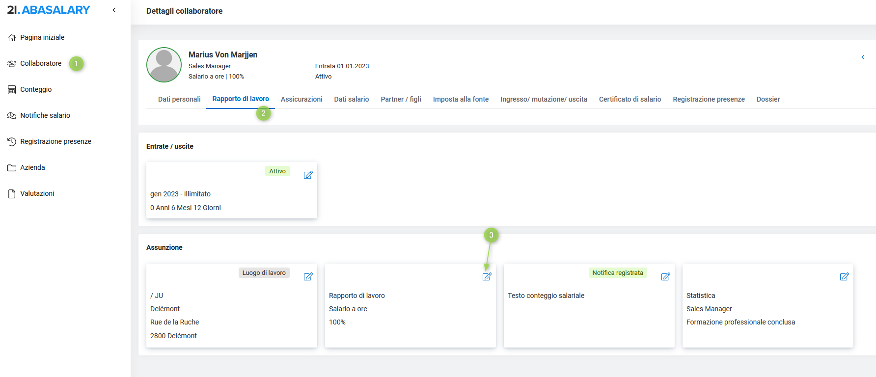 Questo tipo di retribuzione deve essere definito sotto "Collaboratore - Rapporto di lavoro - Rapporto di lavoro" come segue: