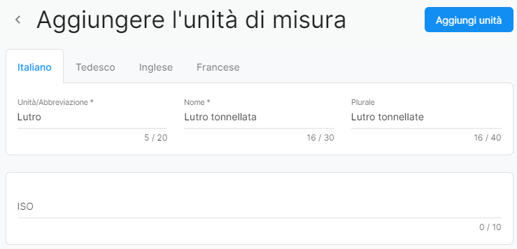 Tramite le impostazioni dei dati base è ora possibile registrare unità di misura proprie.